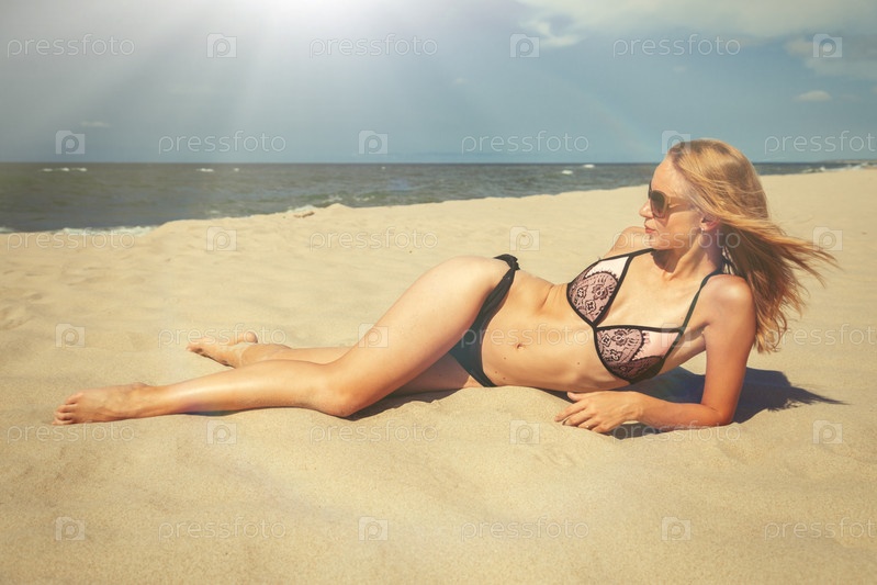 Красивая девушка загорает