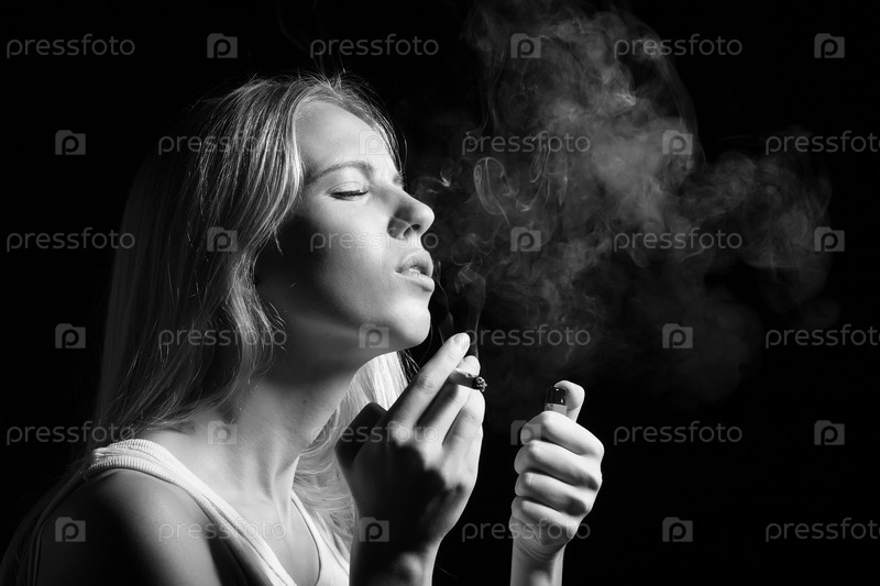 Женщина курит