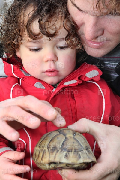 Отец и сын с черепахой