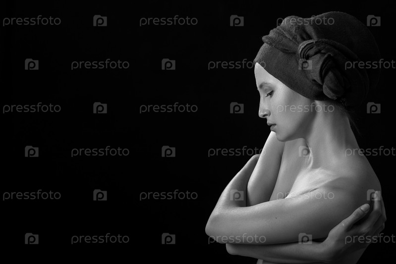 Грустная женщина топлесс