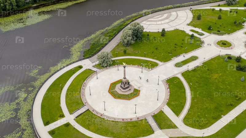 Ярославль, Россия. Стрелка, Которосль впадает в реку Волгу, и где, по преданию, князь Ярослав Мудрый основал город Ярославль, вид с воздуха