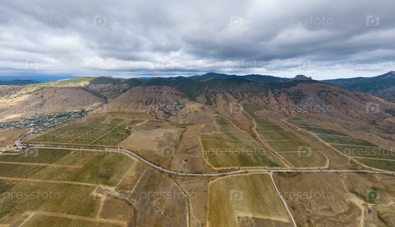 Судак, Крым. Виноградники возле поселка Солнечная Долина. Осень. С высоты птичьего полета