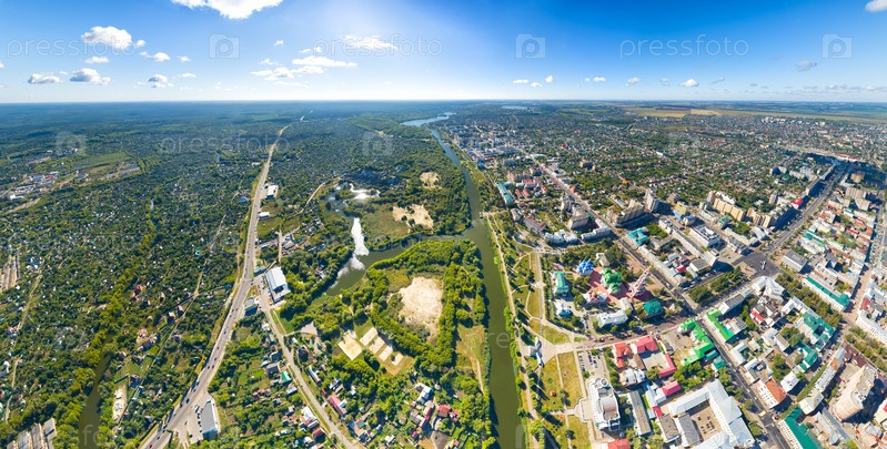 Тамбов, Россия. Панорама города с воздуха летом. Ясная погода с облаками. С высоты птичьего полета