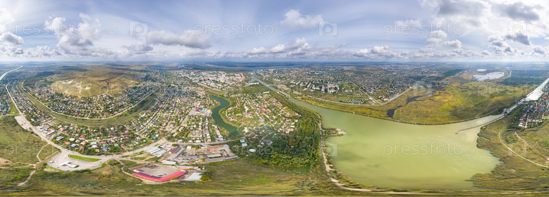 Волгоград, Россия. Красноармейский район. Волго-Донской канал. Панорама 360. Вид с воздуха