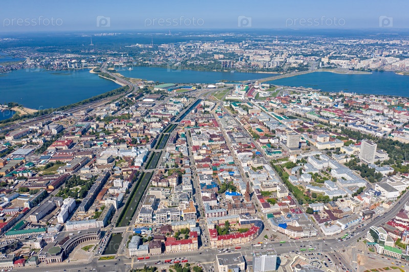 Казань, Россия. Панорамный вид города Казани с Кремлем. река Булак