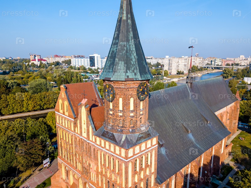 Вид с воздуха Центральная часть города Калининграда, Калининградский собор на острове Канта. Россия