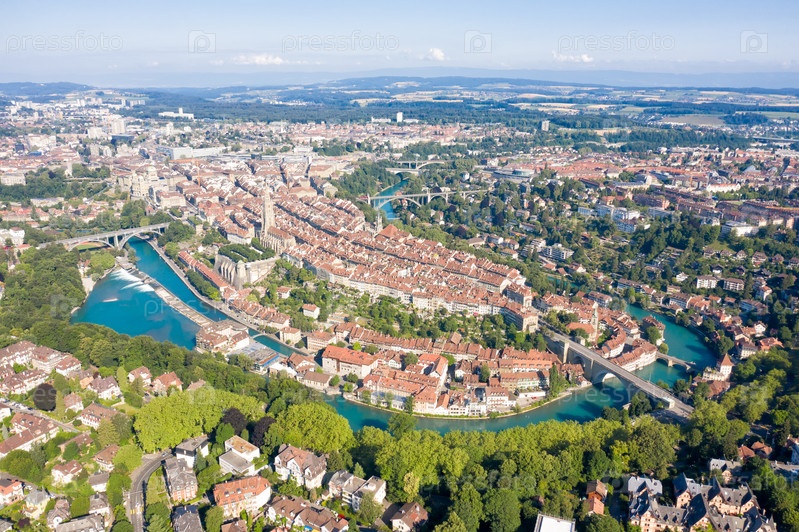 Берн, Швейцария. Панорама. Историческая часть города. С высоты птичьего полета