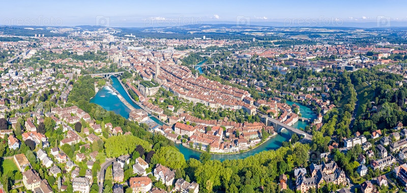 Берн, Швейцария. Панорама. Историческая часть города. С высоты птичьего полета