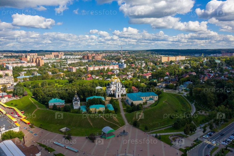 Дмитровский кремль частично сохранившаяся древнерусская крепость XII века. Успенский собор. с высоты птичьего полета