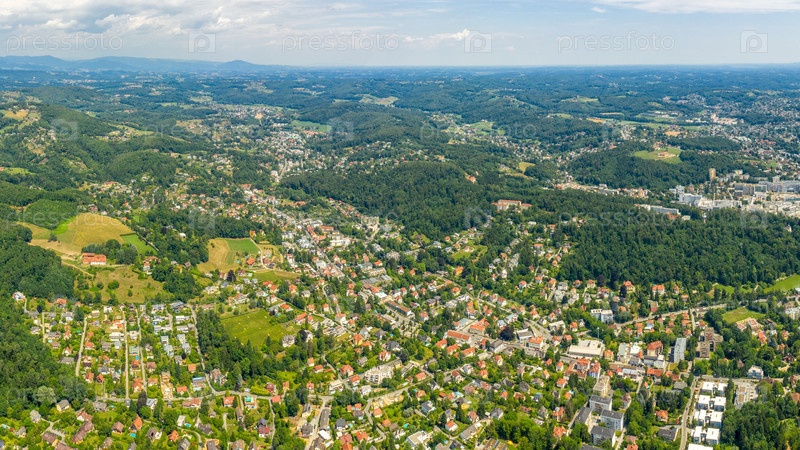Грац, Австрия. Панорама города. Вид с воздуха на город и его окрестности