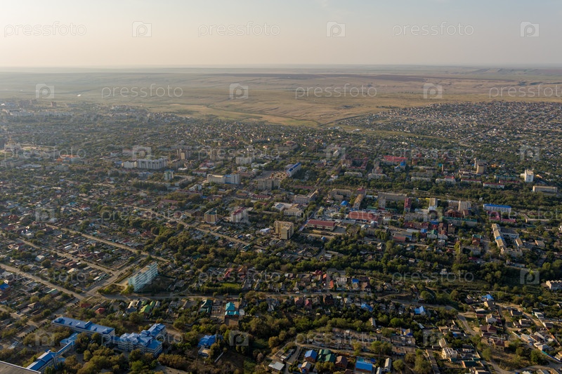 Элиста, Россия. Панорама города утром. С высоты птичьего полета
