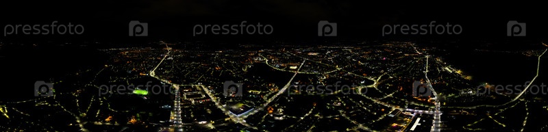 Россия, Владимир. Панорама центра города. Ночной вид с воздуха. Панорама 360