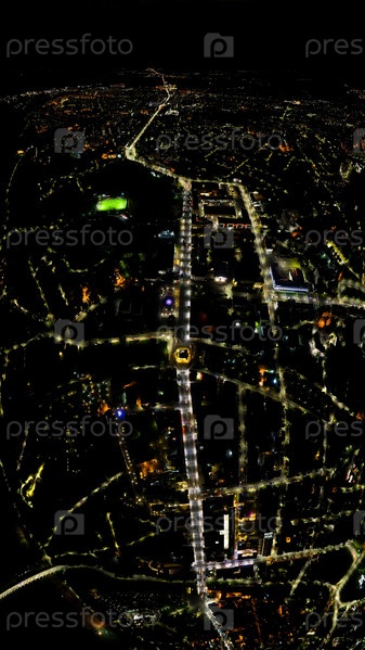 Россия, Владимир. Панорама центра города. Ночной вид с воздуха
