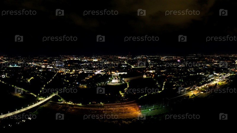 Россия, Владимир. Панорама центра города. Ночной вид с воздуха