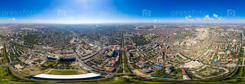 Краснодар, Россия. Общая панорама города Краснодара летом. С высоты птичьего полета. Панорама 360