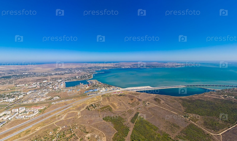 Керчь, Крым. Панорама города Керчи, порта и Таврического шоссе. С высоты птичьего полета