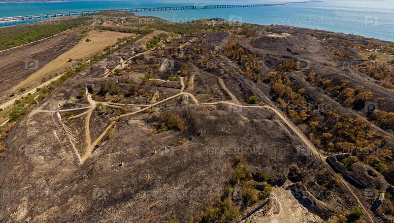 Керчь, Крым. Крепость Керчь - Артиллерийский форт 19 века с тоннелями и подземельями. С видом на Крымский мост. С высоты птичьего полета