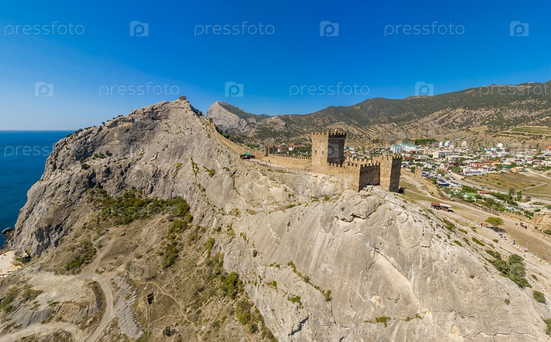 Судак, Крым. Генуэзская крепость. Вид с воздуха с Черного моря. Лето