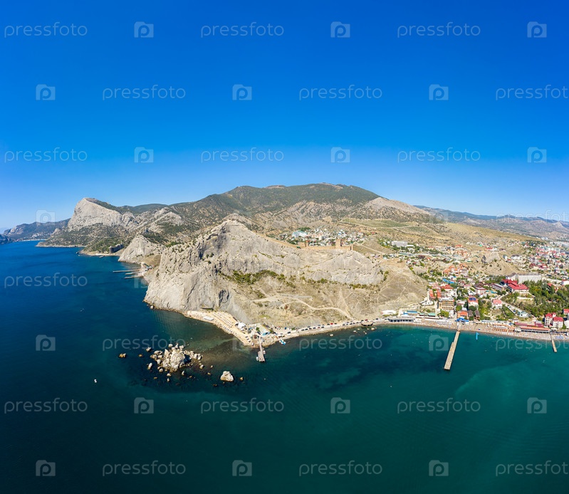 Судак, Крым. Генуэзская крепость. Вид с воздуха с Черного моря. Лето