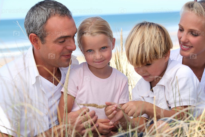 Молодая семья на пляже