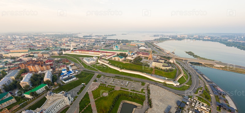 Вид с воздуха на Казанский Кремль во время восхода солнца