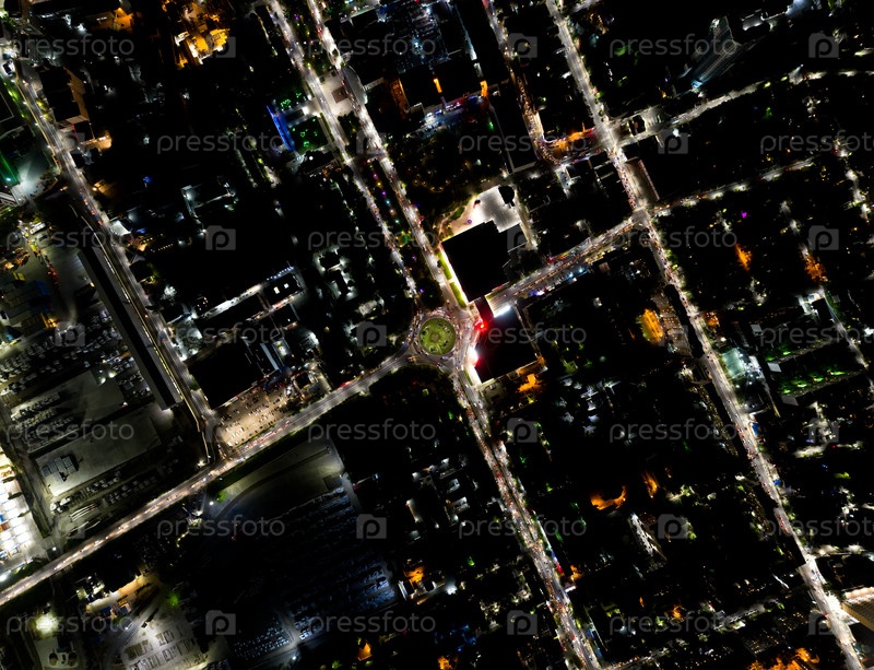 Новороссийск, Россия. Центральная часть города. Кольцо Кутузова. Вид с воздуха ночью