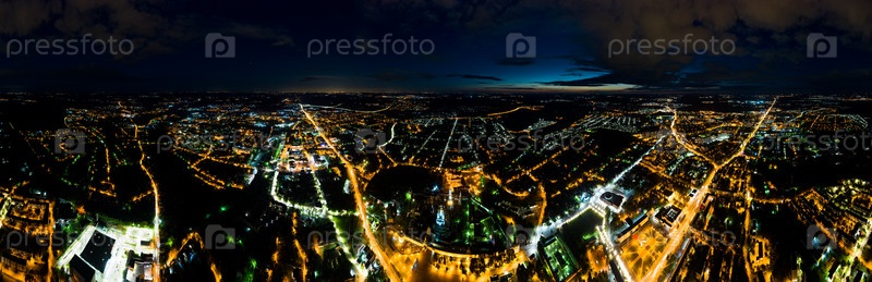 Сергиев Посад, Россия. Город золотого кольца россии. Вид с воздуха ночью. Свято-Троицкая Сергиева Лавра. Панорама 360