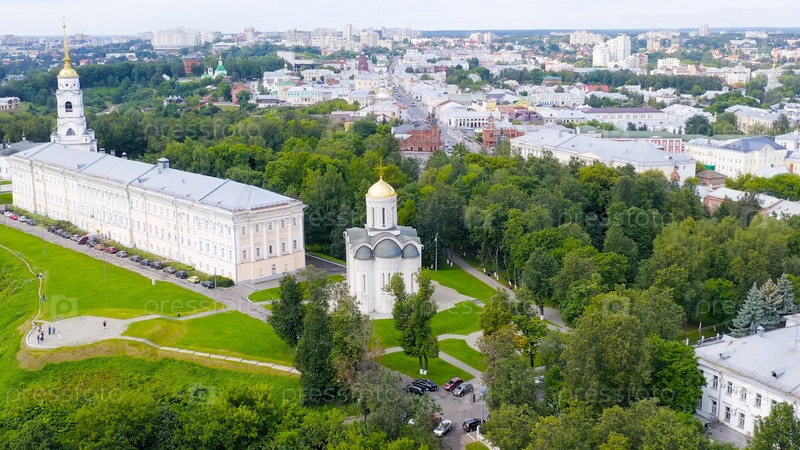 Дмитриевский собор - монументальный собор XII века, вид с воздуха