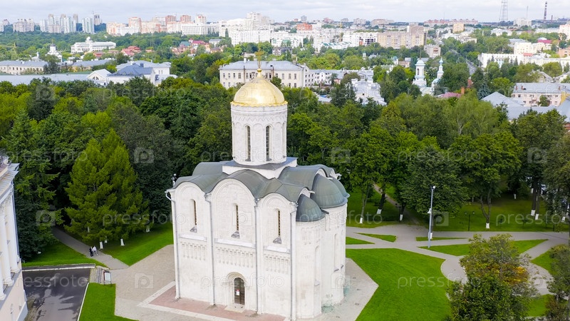 Дмитриевский собор - монументальный собор XII века, вид с воздуха