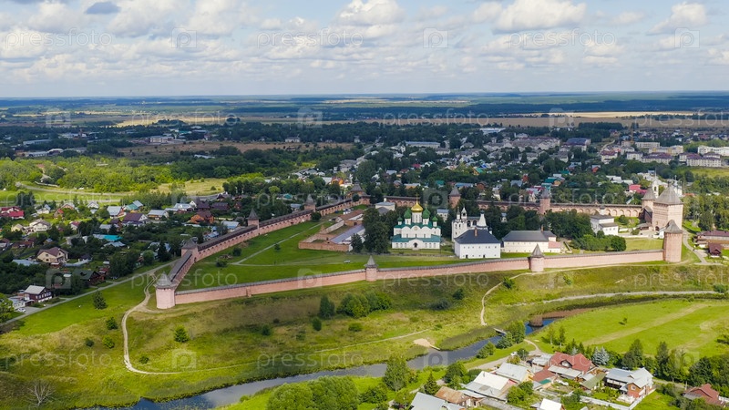 Суздаль, Россия. Полет. Спасо-Евфимиев монастырь — монастырь в Суздале, основанный в 1352 году, вид с воздуха