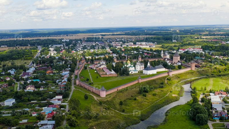 Суздаль, Россия. Полет. Спасо-Евфимиев монастырь — монастырь в Суздале, основанный в 1352 году, вид с воздуха