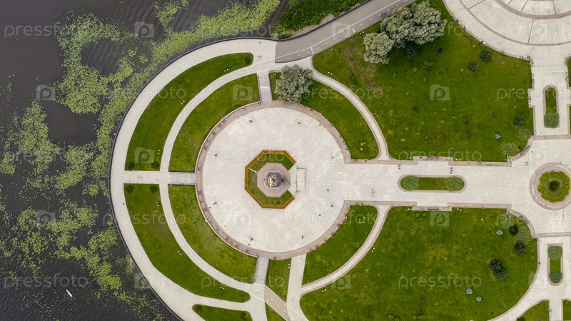 Ярославль, Россия. Стрелка, Которосль впадает в реку Волгу, и где, по преданию, князь Ярослав Мудрый основал город Ярославль, вид с воздуха, СНИМОК ГОЛОВЫ
