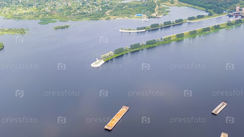 Рыбинск, Россия. Система запирания Рыбинского водохранилища, вид с воздуха