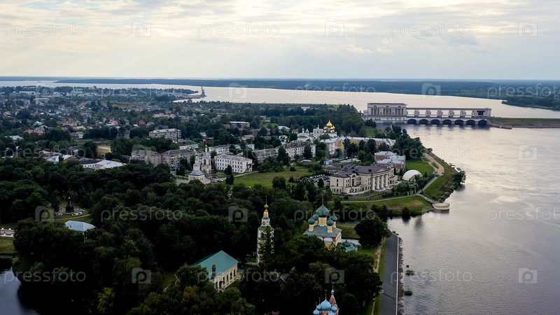 Углич, Россия. Углич с воздуха, Угличский кремль, главная достопримечательность города, вид с воздуха