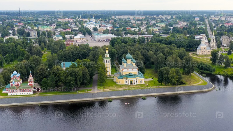 Углич, Россия. Углич с воздуха, Угличский кремль, главная достопримечательность города, вид с воздуха