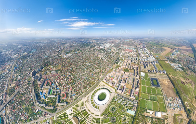 Краснодар, Россия. Панорама города летом. Парк в городе Краснодар. Футбольные площадки. С высоты птичьего полета