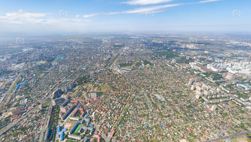 Краснодар, Россия. Панорама города летом. С высоты птичьего полета