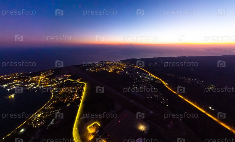 Геленджик, Россия. Вид на ночной город. Лето. С высоты птичьего полета