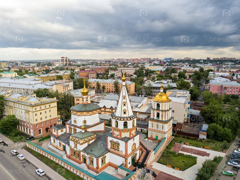 Россия, Иркутск. Собор Богоявления Господня. Православная церковь, католическая церковь. Аэрофотосъемка
