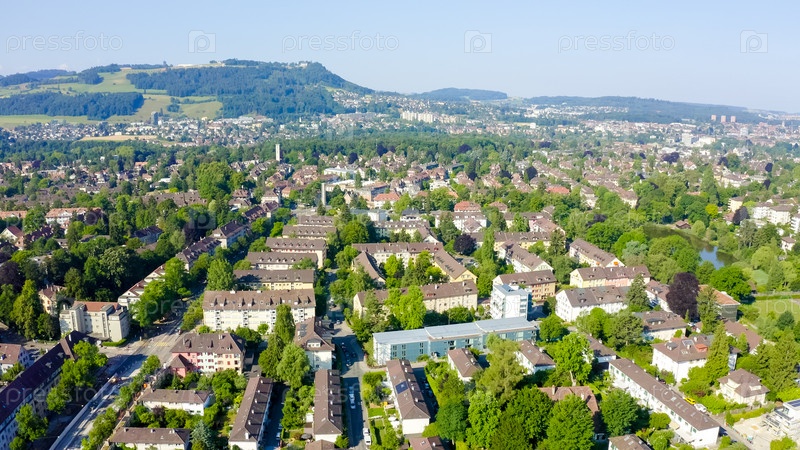 Берн, Швейцария. Центральная часть города. С высоты птичьего полета. Лето