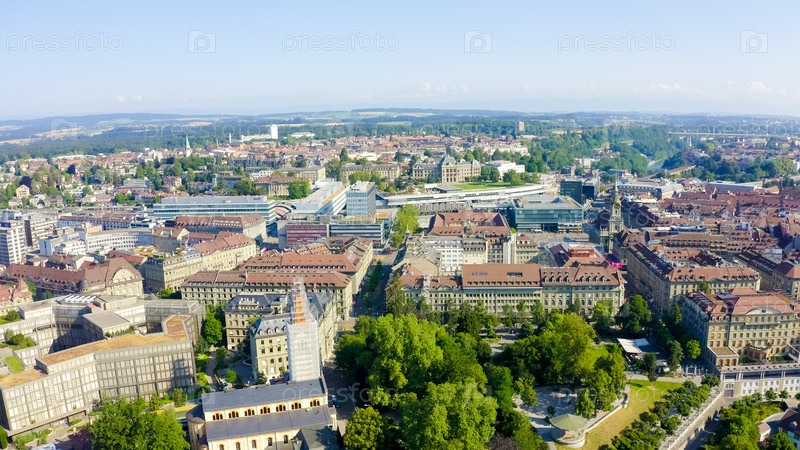 Берн, Швейцария. Центральная часть города. С высоты птичьего полета. Лето
