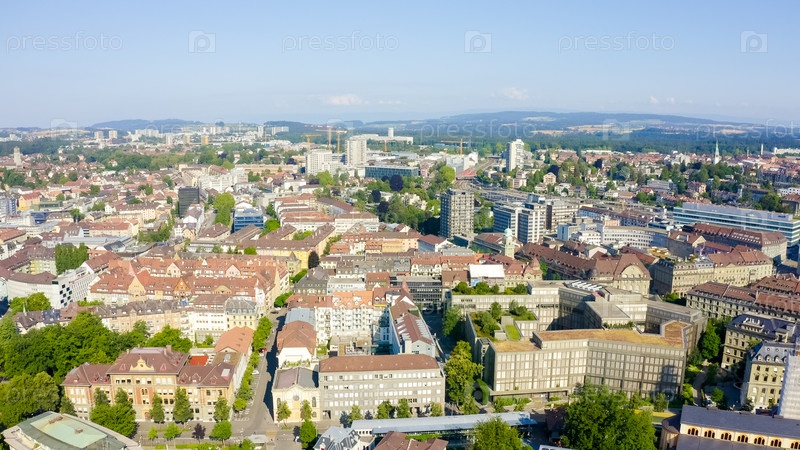 Берн, Швейцария. Центральная часть города. С высоты птичьего полета. Лето