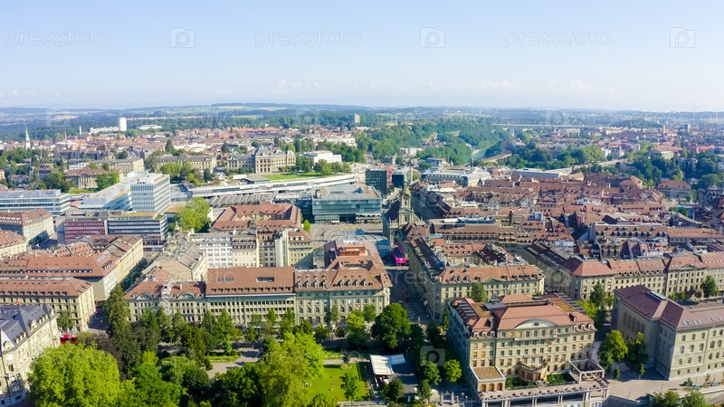 Берн, Швейцария. Центральная часть города. С высоты птичьего полета. Лето