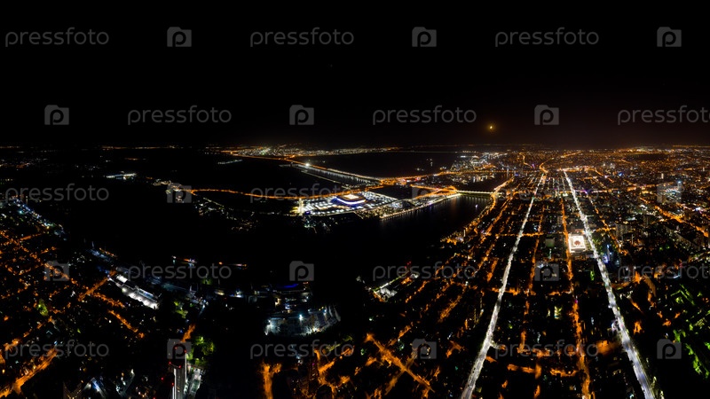 Ростов-на-Дону, Россия. Панорама центральной части Ростова-на-Дону. Ночной вид с воздуха