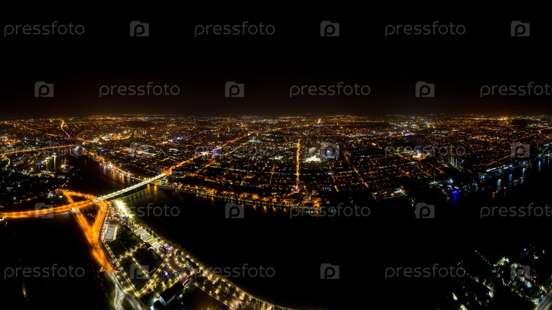 Ростов-на-Дону, Россия. Панорама центральной части Ростова-на-Дону. Ночной вид с воздуха