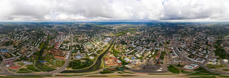 Иваново, Россия. Панорама центральной части города. С высоты птичьего полета. Панорама 360