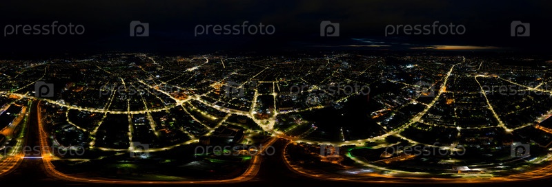 Иваново, Россия. Ночная панорама города. С высоты птичьего полета. Панорама 360