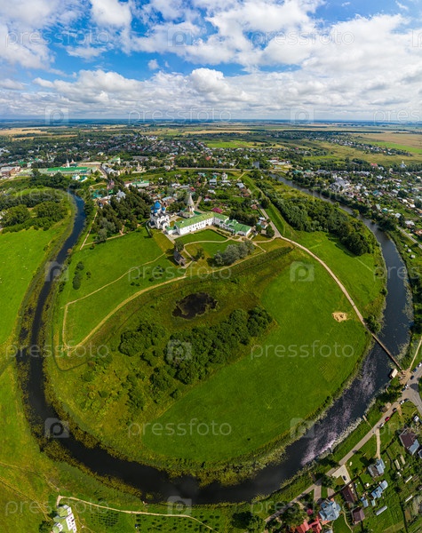 Суздаль, Россия. Панорама летнего города. С высоты птичьего полета