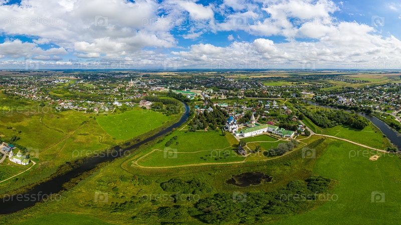 Суздаль, Россия. Панорама летнего города. С высоты птичьего полета