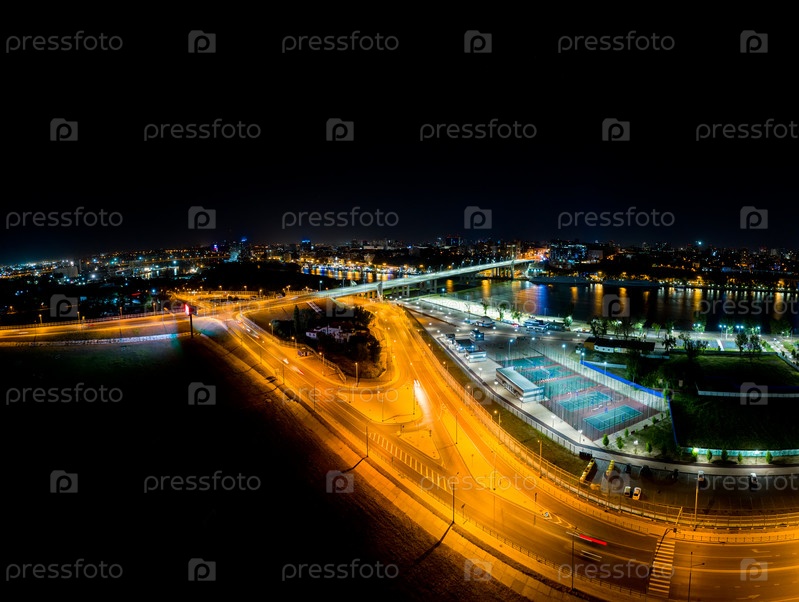 Ростов-на-Дону, Россия. Ночной вид на Ворошиловский мост через реку Дон